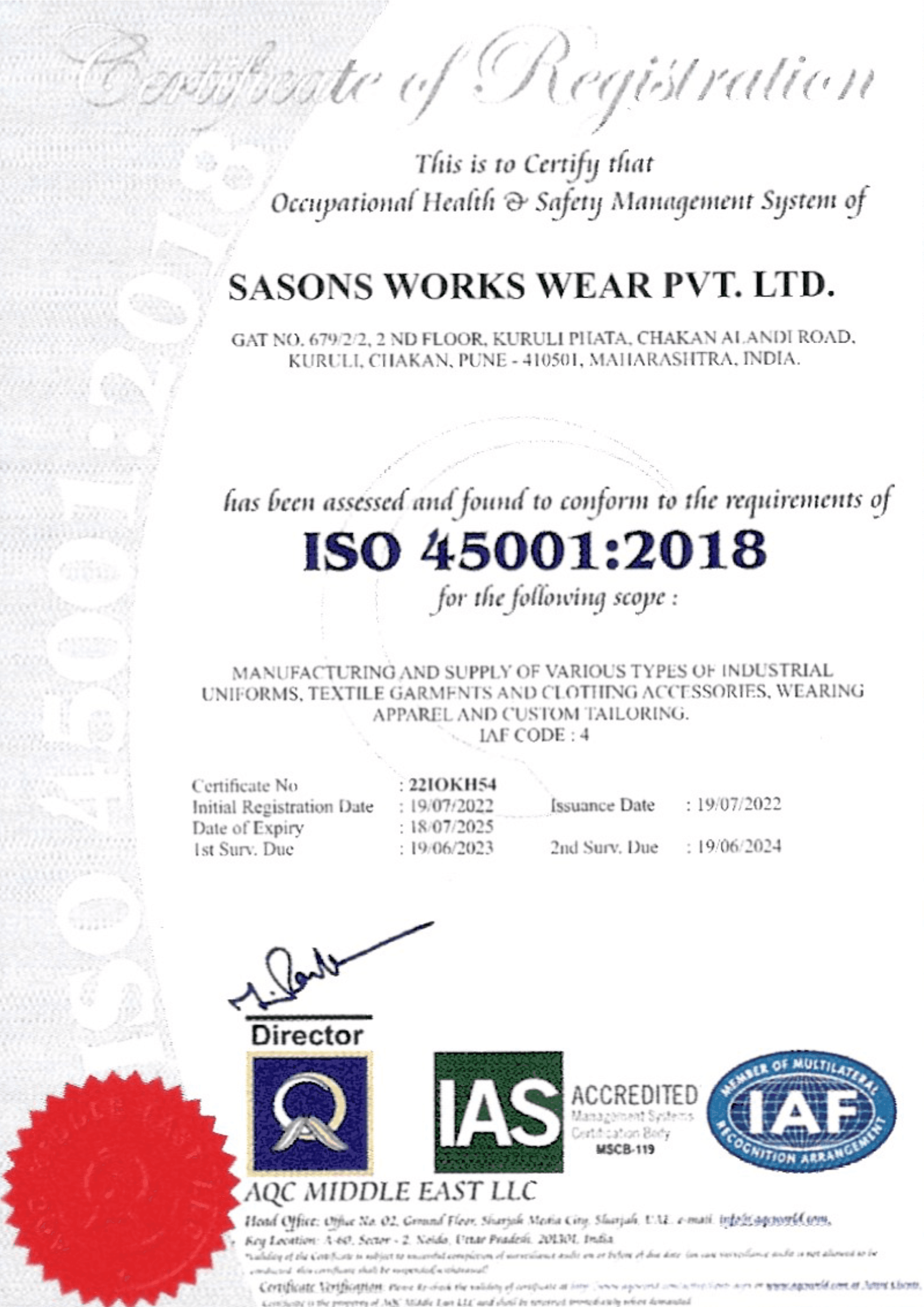 Sasons Works Wear is a leading name in the industrial workwear and uniforms sector. Established in 2000 as a distinguished subsidiary of the Sumeet Group Enterprises, our journey spans over two decades of innovation, integrity, and excellence. We cater to diverse sectors, including industrial, security, healthcare, hospitality, education, and corporate workwear, offering garments that combine functionality, style, and durability.